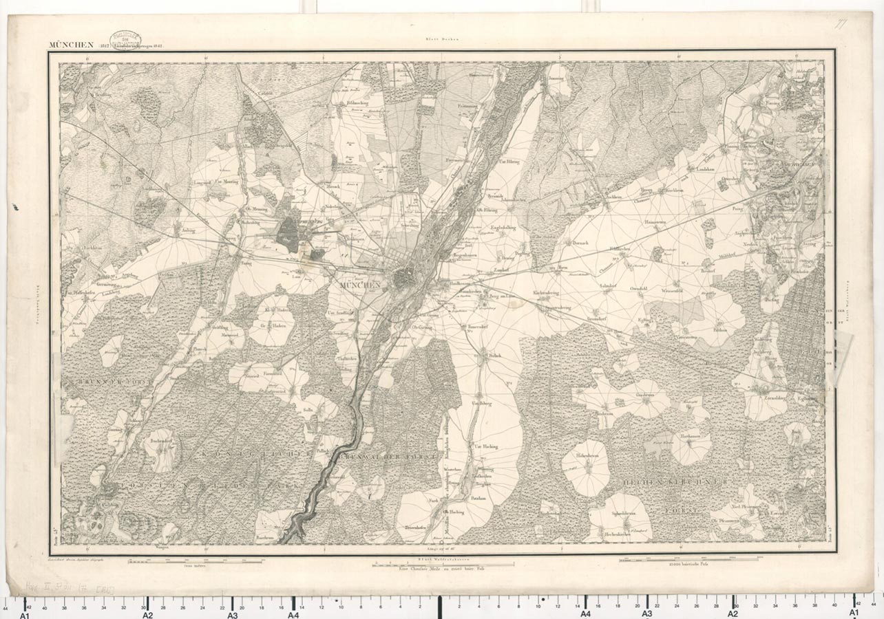 Das erste im Kupferstich fertig gewordene Blatt München (externer Link, öffnet in neuem Tab) wurde am 4. September 1811 dem Ministerium der auswärtigen Angelegenheiten übergeben.